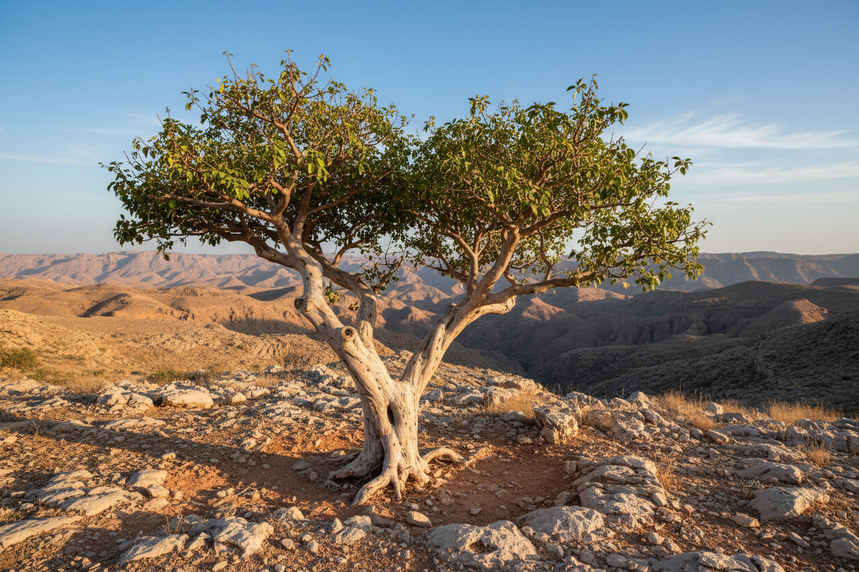 ينمو اللبان العُماني من شجرة البوسويلية المقدسة في بيئة طبيعية فريدة لا تتكرر إلا في جنوب سلطنة عُمان.